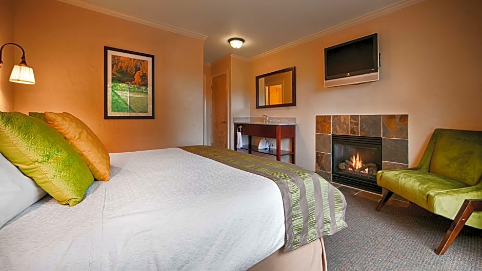 Equipped with free Wi Fi and a flat-screen cable TV, this room features a fireplace, coffee machine, microwave, refrigerator and seating area. Hairdryer, iron, and ironing board are also included.